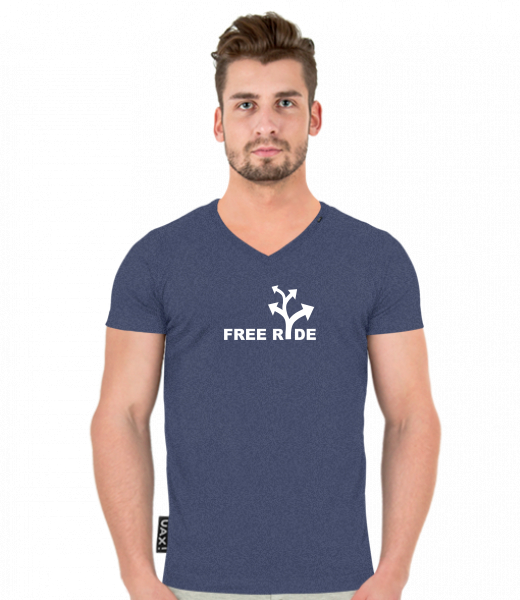 Pánské tričko SLIM FIT s výstřihem do V pro muže s potiskem 344 FREE RIDE v barvě JEANS