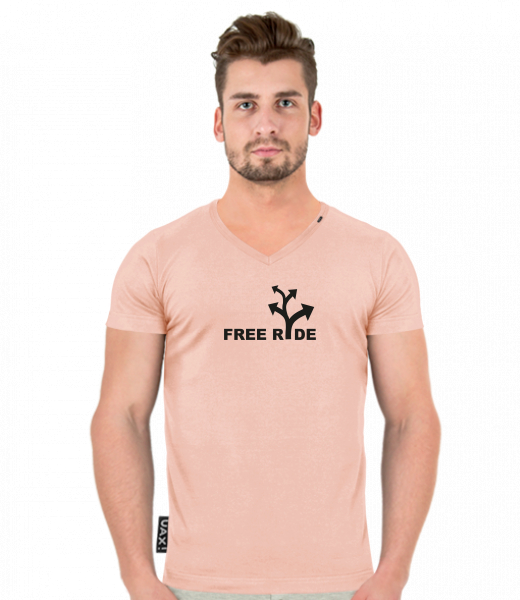 Pánské tričko SLIM FIT s výstřihem do V pro muže s potiskem 344 FREE RIDE v barvě PEACH