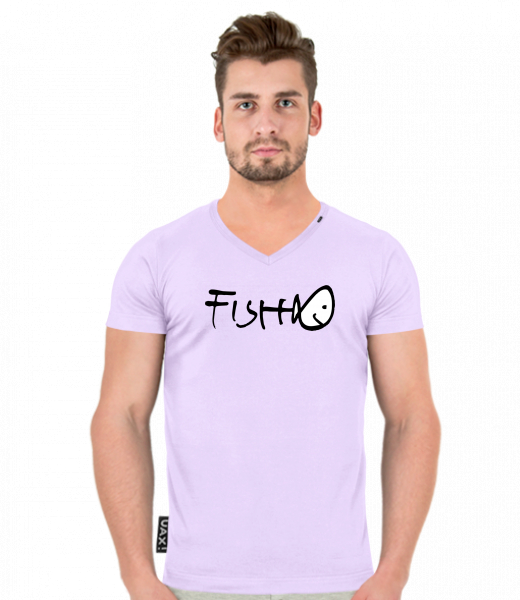 Pánské tričko SLIM FIT s výstřihem do V pro muže s potiskem 357 FISH v barvě LAVENDER