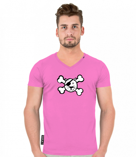Pánské tričko SLIM FIT s výstřihem do V pro muže s potiskem 377 PUSSY v barvě CLASSIC PINK
