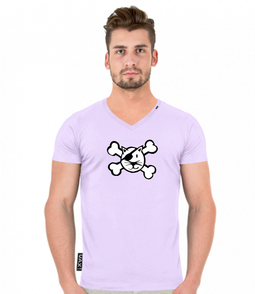 Pánské tričko SLIM FIT s výstřihem do V pro muže s potiskem 377 PUSSY v barvě LAVENDER
