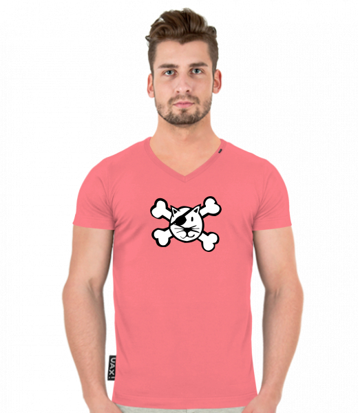 Pánské tričko SLIM FIT s výstřihem do V pro muže s potiskem 377 PUSSY v barvě LOSOSOVA