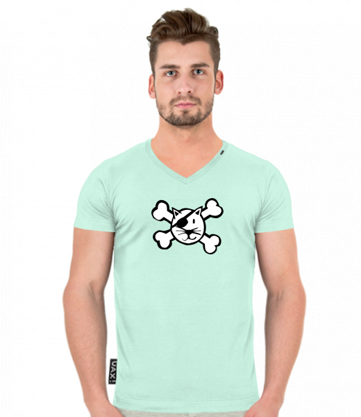 Pánské tričko SLIM FIT s výstřihem do V pro muže s potiskem 377 PUSSY v barvě MINT