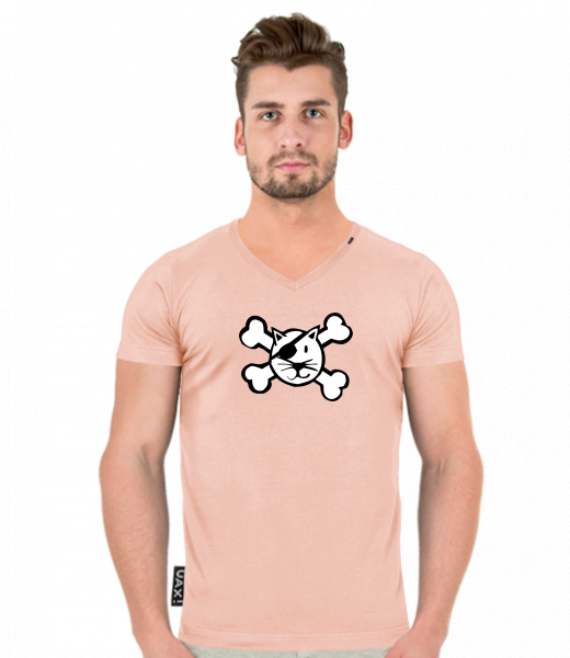 Pánské tričko SLIM FIT s výstřihem do V pro muže s potiskem 377 PUSSY v barvě PEACH
