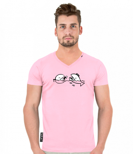 Pánské tričko SLIM FIT s výstřihem do V pro muže s potiskem 385 FISH TAXI v barvě BABY PINK