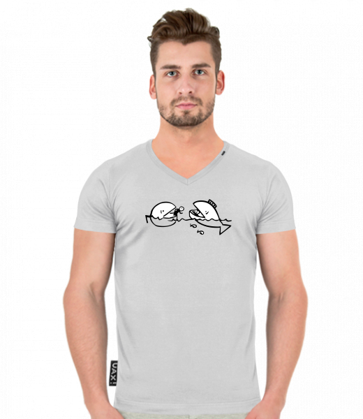 Pánské tričko SLIM FIT s výstřihem do V pro muže s potiskem 385 FISH TAXI v barvě CEMENT