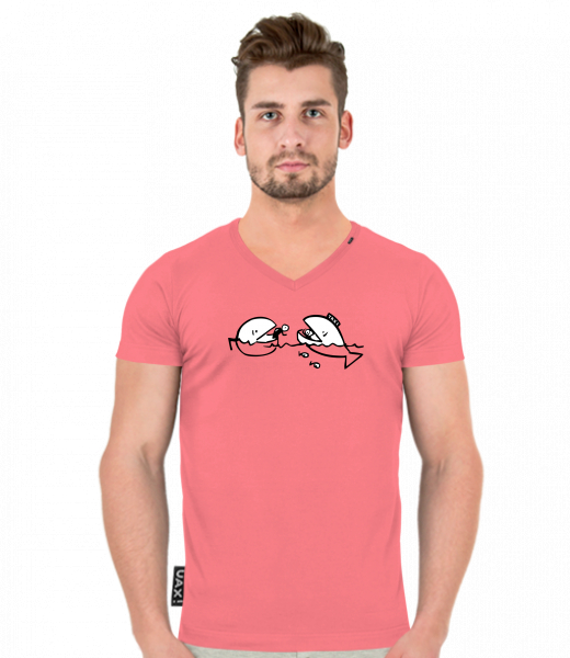 Pánské tričko SLIM FIT s výstřihem do V pro muže s potiskem 385 FISH TAXI v barvě LOSOSOVA