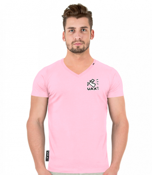 Pánské tričko SLIM FIT s výstřihem do V pro muže s potiskem 412 LOGO UAX! SMALL v barvě BABY PINK