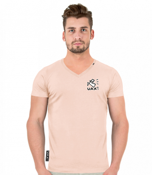 Pánské tričko SLIM FIT s výstřihem do V pro muže s potiskem 412 LOGO UAX! SMALL v barvě CAPPUCINO
