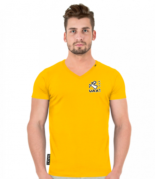 Střih trička a zpracování: Upnutější SLIM střih trička s véčkovým výstřihem. Lem průkrčníku je olemovaný bavlnou. Do lemu průkrčníku je všitá malá tkaná etiketa UAX. Tričko má v bočním švu všitou tkanou etiketu UAX.