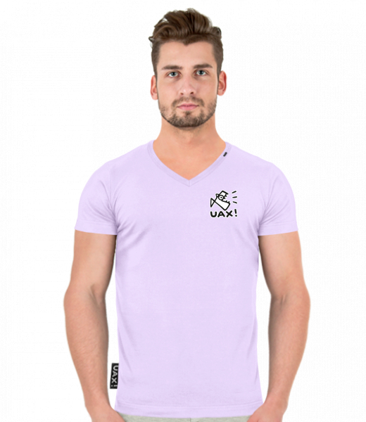 Pánské tričko SLIM FIT s výstřihem do V pro muže s potiskem 412 LOGO UAX! SMALL v barvě LAVENDER