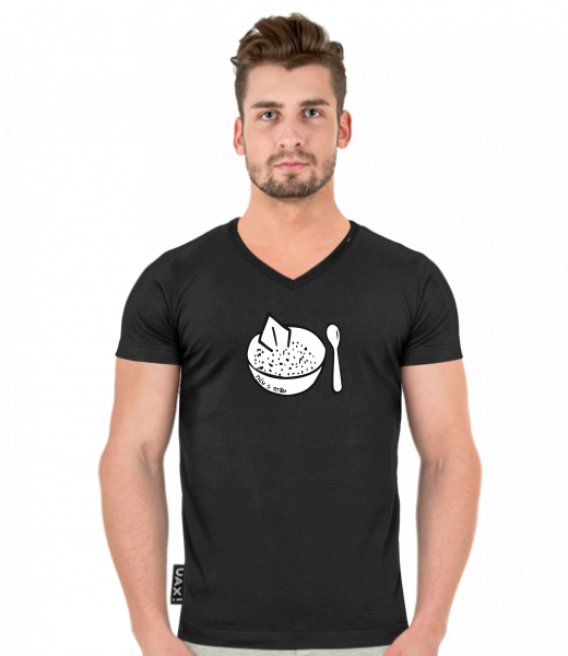 Pánské tričko SLIM FIT s výstřihem do V pro muže s potiskem 428 PICU S RYZU v barvě BLACK