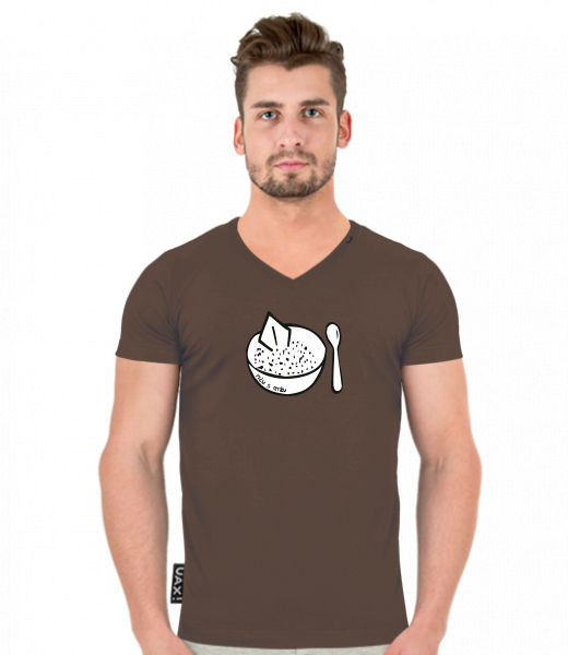 Pánské tričko SLIM FIT s výstřihem do V pro muže s potiskem 428 PICU S RYZU v barvě CHESTNUT