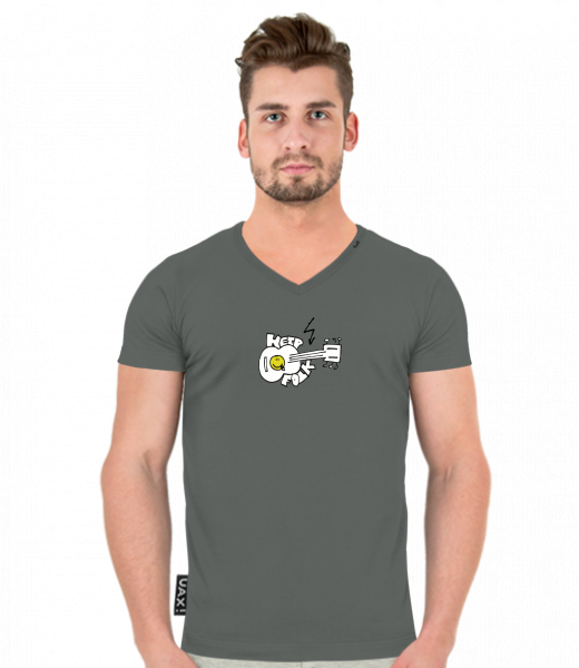 Pánské tričko SLIM FIT s výstřihem do V pro muže s potiskem 441 KEEP FOLK v barvě DARK GRAY
