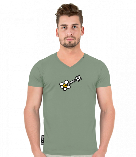 Pánské tričko SLIM FIT s výstřihem do V pro muže s potiskem 443 KYTKARA v barvě OLIVA