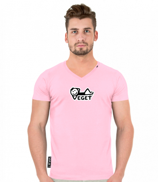 Pánské tričko SLIM FIT s výstřihem do V pro muže s potiskem 468 VEGET v barvě BABY PINK