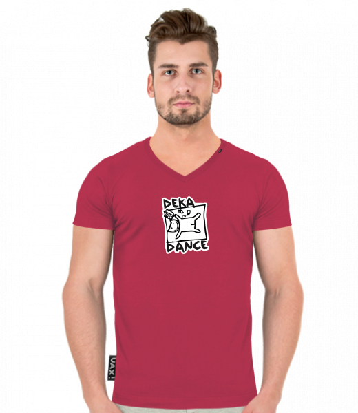 Pánské tričko SLIM FIT s výstřihem do V pro muže s potiskem 471 DEKA DANCE v barvě CHILLY PEPPER RED