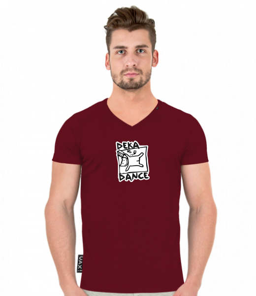 Pánské tričko SLIM FIT s výstřihem do V pro muže s potiskem 471 DEKA DANCE v barvě DARK RED