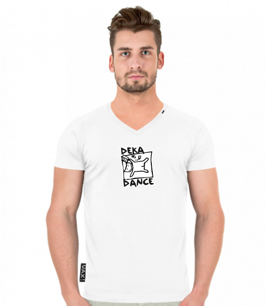 Pánské tričko SLIM FIT s výstřihem do V pro muže s potiskem 471 DEKA DANCE v barvě WHITE