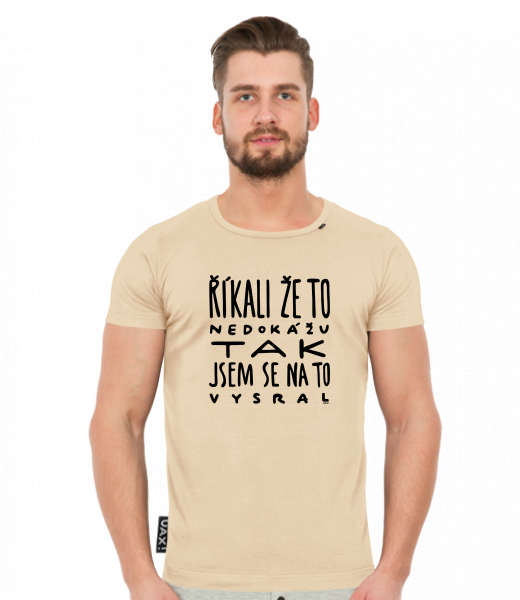 Pánské tričko SLIM FIT UAX! pro muže s potiskem 1366 ŘÍKALI ŽE TO NEDOKÁŽU TAK JSEM SE NA TO VYSRAL v barvě CARAMEL