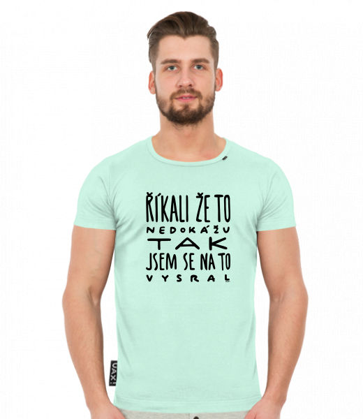 Pánské tričko SLIM FIT UAX! pro muže s potiskem 1366 ŘÍKALI ŽE TO NEDOKÁŽU TAK JSEM SE NA TO VYSRAL v barvě MINT