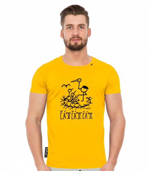 Vyrábíme udržitelné oblečení UAX! - ručně šité v Česku uaxMuži uaxVšechny produktyTričkaTRIČKO SLIM FITpotisk 1379 - ČÁPÍČÁPÍČÁPÍGOLDEN CREAM
