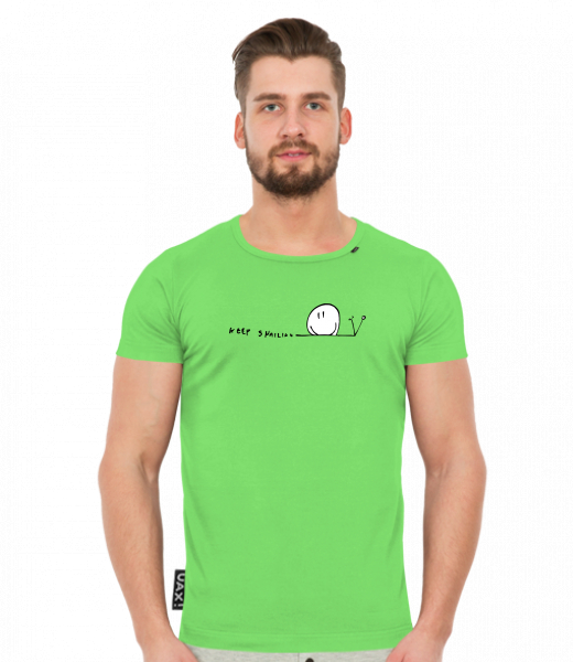 Pánské tričko SLIM FIT UAX! pro muže s potiskem 249 KEEP SNAILING v barvě APPLE