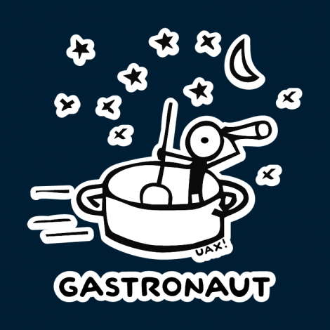 „Vaříte spaciální jídla? Touláte se Gastronomickými zážitky? Vesmírně vám chutná jídlo? Tady máte typ na skvělý dárek? Originální potisk GASTRONAUT z dílny UAX!“