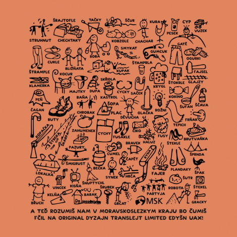 „"Limited edyšn z Moravskoslezkeho kraja Verze 2.0". Kancelář hejtmana Moravskoslezského kraje má v plánu u nás objednat kopu triček, pro prezentaci kraje. Oceňujeme přístup, který vede k podpoře drobných podnikatelů a řemesel v kraji! Už se nebude nakupovat vášnivě prý v Asii!!! Tož super ne? A tak tu v UAX na tom dizajnu a dalších, robíme! Fčil si ho mužeš kupit za chechtaky tu!“