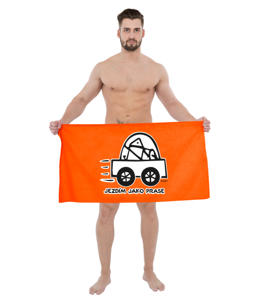 Vyrábíme udržitelné oblečení UAX! - ručně šité v Česku uaxŽeny uaxGolf kolekceRučníky a osuškyRUČNÍK S POTISKEMpotisk 1072 - JEZDÍM JAKO PRASESIGNAL ORANGE