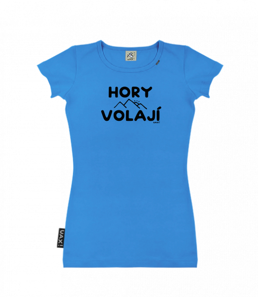 Dámské trička s potiskem SKRATDA UAX! - dámské tričko s výběrem potisku Golf kolekce pro ženy s potiskem 1262 HORY VOLAJÍ v barvě CAPRI BLUE