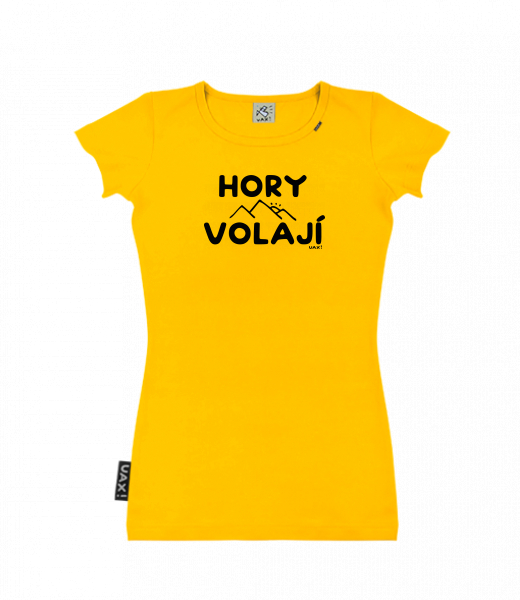 Dámské trička s potiskem SKRATDA UAX! - dámské tričko s výběrem potisku Golf kolekce pro ženy s potiskem 1262 HORY VOLAJÍ v barvě GOLDEN CREAM