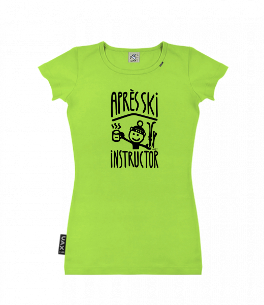 Dámské trička s potiskem SKRATDA UAX! - dámské tričko s výběrem potisku Golf kolekce pro ženy s potiskem 1367 APRÉS SKI INSTRUCTOR v barvě PARROT GREEN