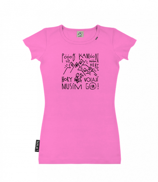 Vyrábíme udržitelné oblečení UAX! - ručně šité v Česku uaxŽeny uaxGolf kolekceTričkaTRIČKA SKRATDApotisk 1368 - POOOĎ KAMOON HORY MUSÍM JÍT GOCLASSIC PINK