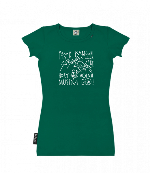 Dámské trička s potiskem SKRATDA UAX! - dámské tričko s výběrem potisku Golf kolekce pro ženy s potiskem 1368 POOOĎ KAMOON HORY MUSÍM JÍT GO v barvě UNIVERSITY GREEN