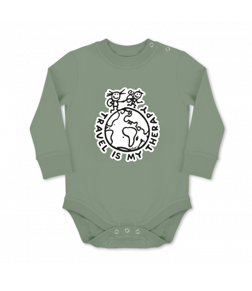 Dětské body dlouhý rukáv Lyžařská kolekce pro ženy s potiskem 1240 TRAVEL IS MY THERAPY v barvě OLIVA