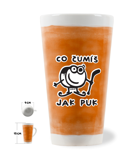 Vyrábíme udržitelné oblečení UAX! - ručně šité v Česku uaxŽeny uaxLyžařská kolekceHrnkyHRNEK LATTE 0,4Lpotisk 1101 - ČUMÍŠ JAK PUKSIGNAL ORANGE