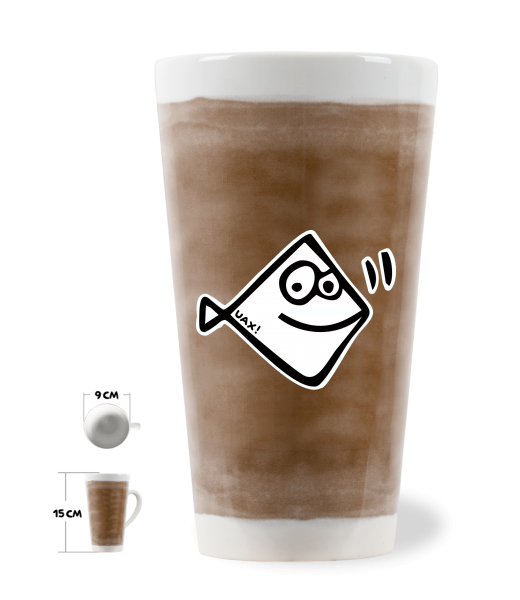 Originální HRNEK LATTE UAX! s uchem o objemu 0,4L se stane stylovým doplňkem do Vašich domácností. Mix & Match - Vybírej z mnoha originálních potisků a kombinuj anilinové barvy podkladu. HRNEK LATTE 0,4L vyrábíme tak, že nejdříve provádíme vytištění předlohy potisku na přenosový papír na stroji Mimaki TS5 a následnou sublimaci pomoci sublimačního lisu. Tiskneme na hrnky se spec. povrchovou úpravou pro potisk, kdy základní barva hrnku je bílá.
