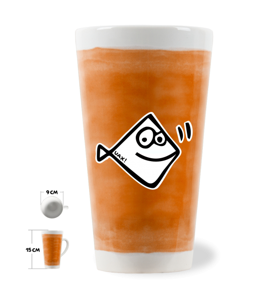 Originální HRNEK LATTE UAX! s uchem o objemu 0,4L se stane stylovým doplňkem do Vašich domácností. Mix & Match - Vybírej z mnoha originálních potisků a kombinuj anilinové barvy podkladu. HRNEK LATTE 0,4L vyrábíme tak, že nejdříve provádíme vytištění předlohy potisku na přenosový papír na stroji Mimaki TS5 a následnou sublimaci pomoci sublimačního lisu. Tiskneme na hrnky se spec. povrchovou úpravou pro potisk, kdy základní barva hrnku je bílá.