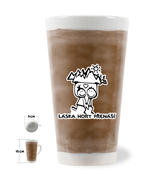 HRNEK LATTE UAX! o objemu 0,4L Lyžařská kolekce pro ženy s potiskem 1128 LÁSKA HORY PŘENÁŠÍ v barvě BROWN SUGAR