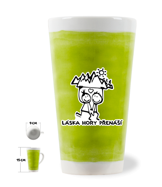 HRNEK LATTE UAX! o objemu 0,4L Lyžařská kolekce pro ženy s potiskem 1128 LÁSKA HORY PŘENÁŠÍ v barvě GREEN LIMET