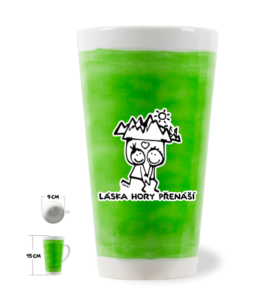 HRNEK LATTE UAX! o objemu 0,4L Lyžařská kolekce pro ženy s potiskem 1128 LÁSKA HORY PŘENÁŠÍ v barvě PARROT GREEN
