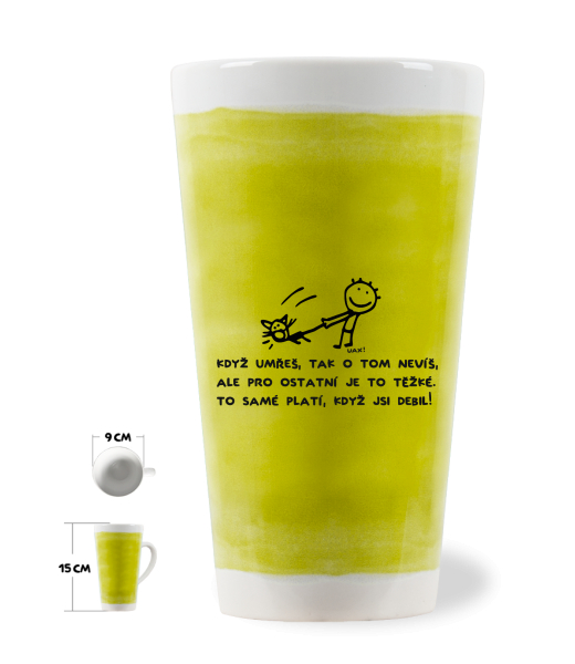Originální HRNEK LATTE UAX! s uchem o objemu 0,4L se stane stylovým doplňkem do Vašich domácností. Mix & Match - Vybírej z mnoha originálních potisků a kombinuj anilinové barvy podkladu. HRNEK LATTE 0,4L vyrábíme tak, že nejdříve provádíme vytištění předlohy potisku na přenosový papír na stroji Mimaki TS5 a následnou sublimaci pomoci sublimačního lisu. Tiskneme na hrnky se spec. povrchovou úpravou pro potisk, kdy základní barva hrnku je bílá.
