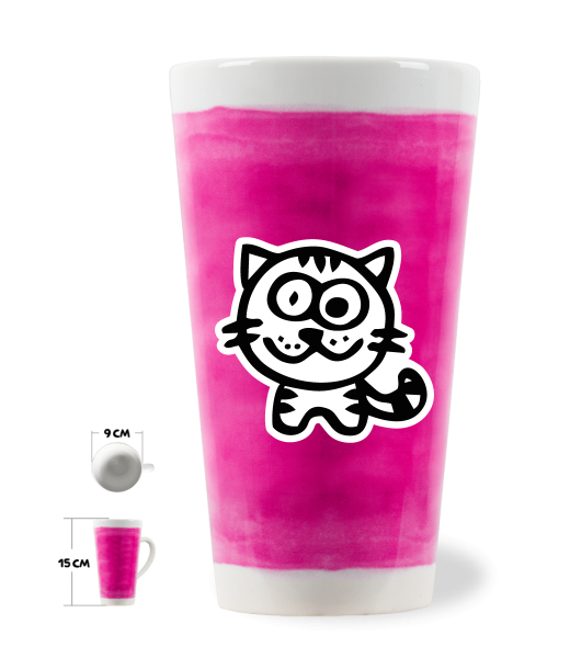 Originální HRNEK LATTE UAX! s uchem o objemu 0,4L se stane stylovým doplňkem do Vašich domácností. Mix & Match - Vybírej z mnoha originálních potisků a kombinuj anilinové barvy podkladu. HRNEK LATTE 0,4L vyrábíme tak, že nejdříve provádíme vytištění předlohy potisku na přenosový papír na stroji Mimaki TS5 a následnou sublimaci pomoci sublimačního lisu. Tiskneme na hrnky se spec. povrchovou úpravou pro potisk, kdy základní barva hrnku je bílá.