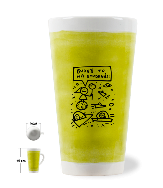 Originální HRNEK LATTE UAX! s uchem o objemu 0,4L se stane stylovým doplňkem do Vašich domácností. Mix & Match - Vybírej z mnoha originálních potisků a kombinuj anilinové barvy podkladu. HRNEK LATTE 0,4L vyrábíme tak, že nejdříve provádíme vytištění předlohy potisku na přenosový papír na stroji Mimaki TS5 a následnou sublimaci pomoci sublimačního lisu. Tiskneme na hrnky se spec. povrchovou úpravou pro potisk, kdy základní barva hrnku je bílá.