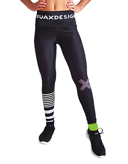 Speciální povrchová úprava proti oděru (odolnost 5). Menší pružnost do šířky a větší pružnost do délky. Při tisku a po natažení materiál neprosvítá bílá. Barvy jsou brilantnější. Top materiál určený pro sport. Je kompresní, zabraňuje mikro otřesům svalů a tím oddaluje únavu. Dámské sportovní legíny v originálním designu UAX! Pohodlné sportovní legíny vhodné na cvičení jógy, pilátes, tanec a pod. Sportovní legíny UAX! mají pohodlný přiléhavý střih, který kopíruje postavu. Legíny jsou vyrobeny z vysoce kvalitního, rychleschnoucího materiálu Sinapsi Endurance 210g/qm. Sportovní legíny mají vysoký pas, který se dá snížit ohrnutím. Dámské sportovní legíny v originálním designu UAX! mají vysokou kvalitu zpracování a jsou vyrobeny v ČR.