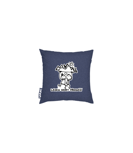 Povlak na polštář 20x20 Lyžařská kolekce pro ženy s potiskem 1128 LÁSKA HORY PŘENÁŠÍ v barvě JEANS