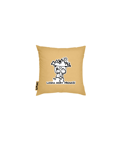 Vyrábíme udržitelné oblečení UAX! - ručně šité v Česku uaxŽeny uaxLyžařská kolekcePolštářePOVLAK NA POLŠTÁŘ 20x20potisk 1128 - LÁSKA HORY PŘENÁŠÍMUSTARD