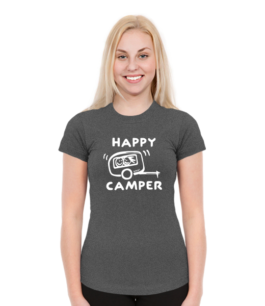 Dámská trička SKRATDA NEW Lyžařská kolekce pro ženy s potiskem 1116 HAPPY CAMPER v barvě GRAFIT