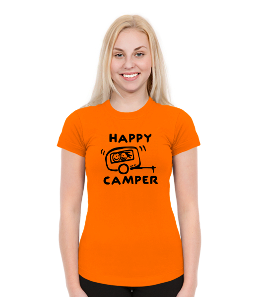 Dámská trička SKRATDA NEW Lyžařská kolekce pro ženy s potiskem 1116 HAPPY CAMPER v barvě SIGNAL ORANGE